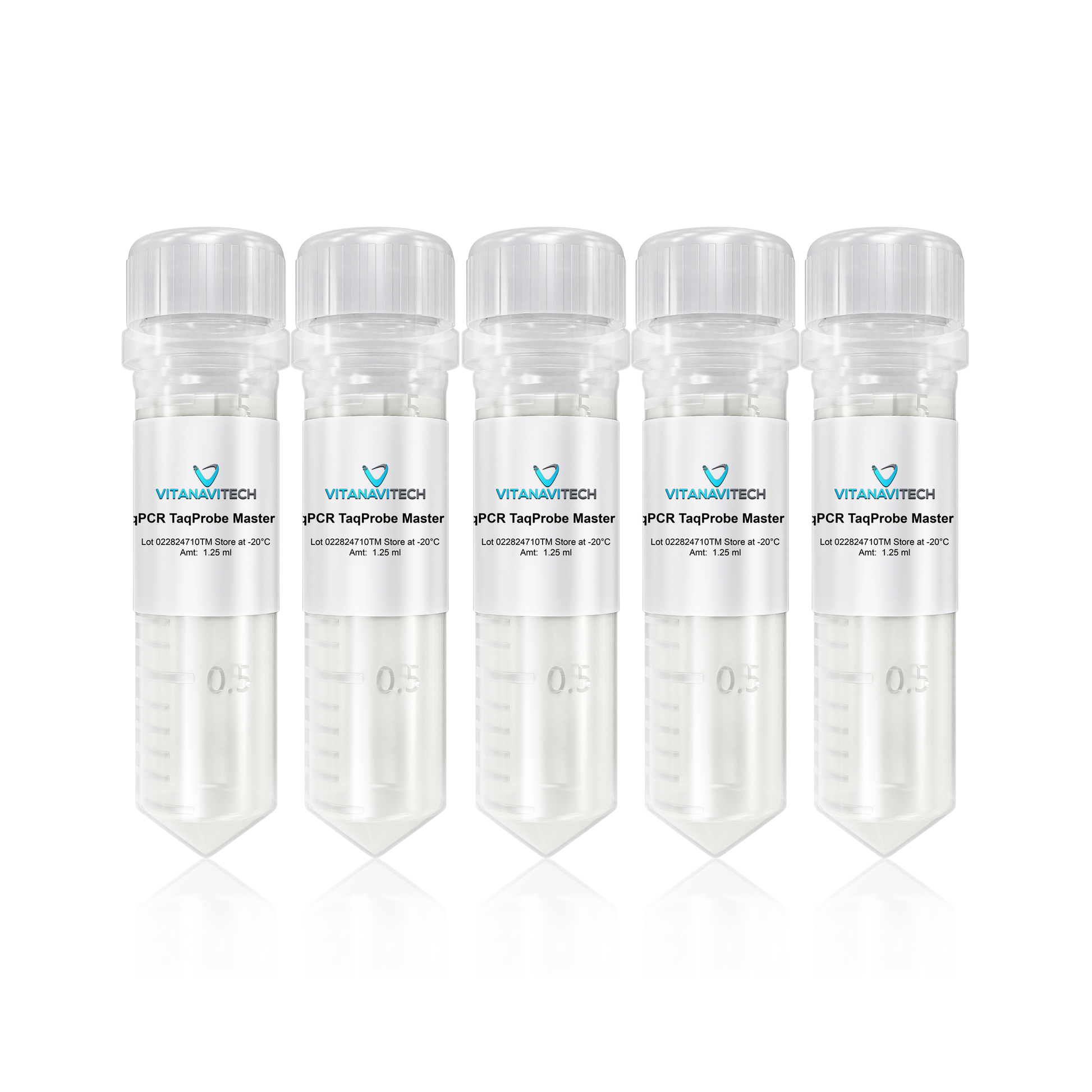 2X qPCR TaqProbe Master Mix is specifically designed for real-time quantitative analysis of DNA target genes. The components of the mix have been optimized for high sensitivity, specificity, and low background. The hot-start and inhibitor-resistant Taq polymerase included in the mix significantly reduce non-specific PCR amplification and false negatives due to residue of PCR inhibitors, which can be commonly observed with other commercial Taq polymerases.